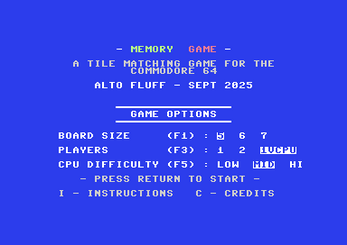 | Tags | 8-Bit, Board Game, Casual, Commodore 64, Local multiplayer, memory, Retro, Singleplayer, Tabletop |